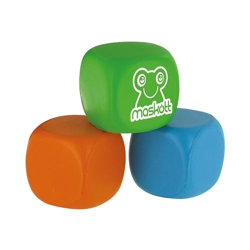 Description Pour chasser stress et pensées négatives, la fameuse balle antistress se décline aussi en forme de dé. Matière ultra souple. Coloris orange, vert, bleu. Marquage 1 couleur blanc conseillé et par défaut.PU |