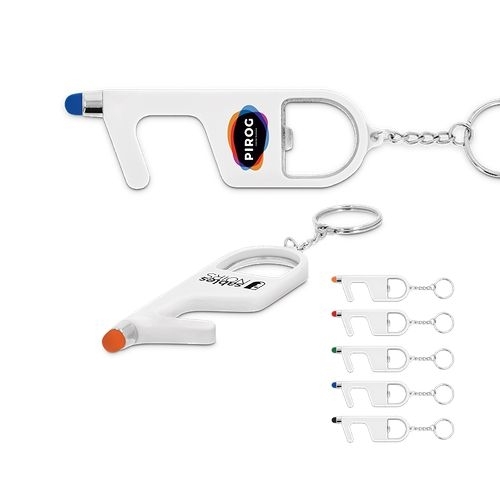 Description Manipulez, touchez, ouvrez, validez avec ce porte-clés crochet stylet décapsuleur traité antibactérien selon la norme ISO 22196-2011 qui vous protégera des microbes. Marquage 1 couleur et plus ou Quadrinumérique.METAL + PLASTIQUE |