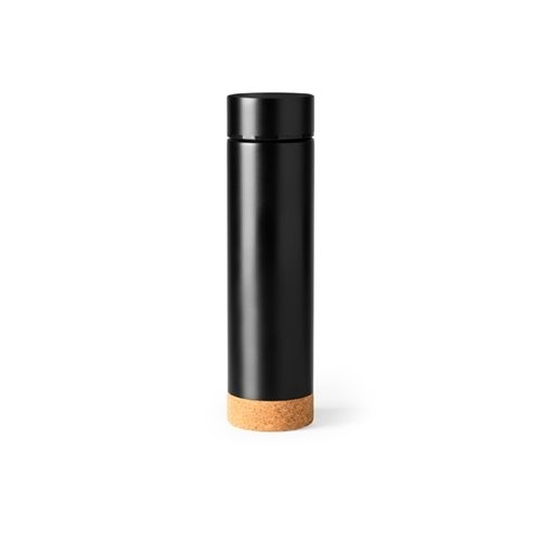 Thermos en acier 304 à double paroi avec infuseur à thé et base en liège. Capacité 460 ml.Acier inoxydable et liège.Présentation dans une boîte design.24,5cm/6,4cm