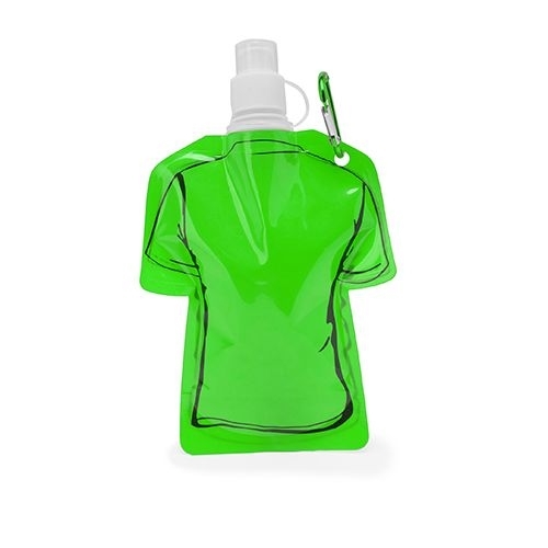 Description Bidon en PET flexible en forme de T-shirt. Bouchon de sécurité et mousqueton pour le transport. Capacité 470 ml.RPET17cm/3,3cm/25,5cm |