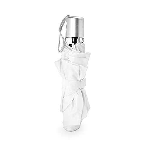 Description Parapluie pliant avec housse assortie. Poignée, tiges et pointe argentés. Fermeture velcro et ouverture manuelle. Diamètre 95.Polyester 190T, métal et plastique.56cm/95cm |