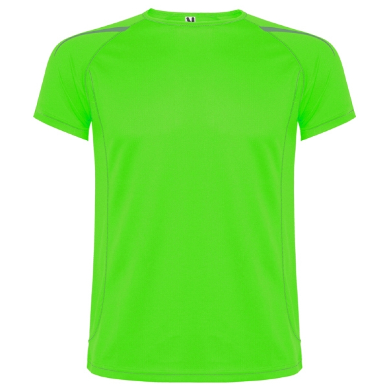 Description T-shirt technique manches courtes raglan. 1.- Manches avec coutures contrastées, ceinture, col et latéral ton sur ton. 2.- Détail du col avec même tissu et étiquette détachable. 3.- Tissu respirant lavage et séchage facile. 4.- Détails réfléssichants, sauf sur la couleur noir et royal, ou le détail est en jaune au lieu de réfléchissant. 100% polyester, maille single jersey, 150 g/m². * Étiquette détachable. *Tissu technique. *Tissu respirant.  |