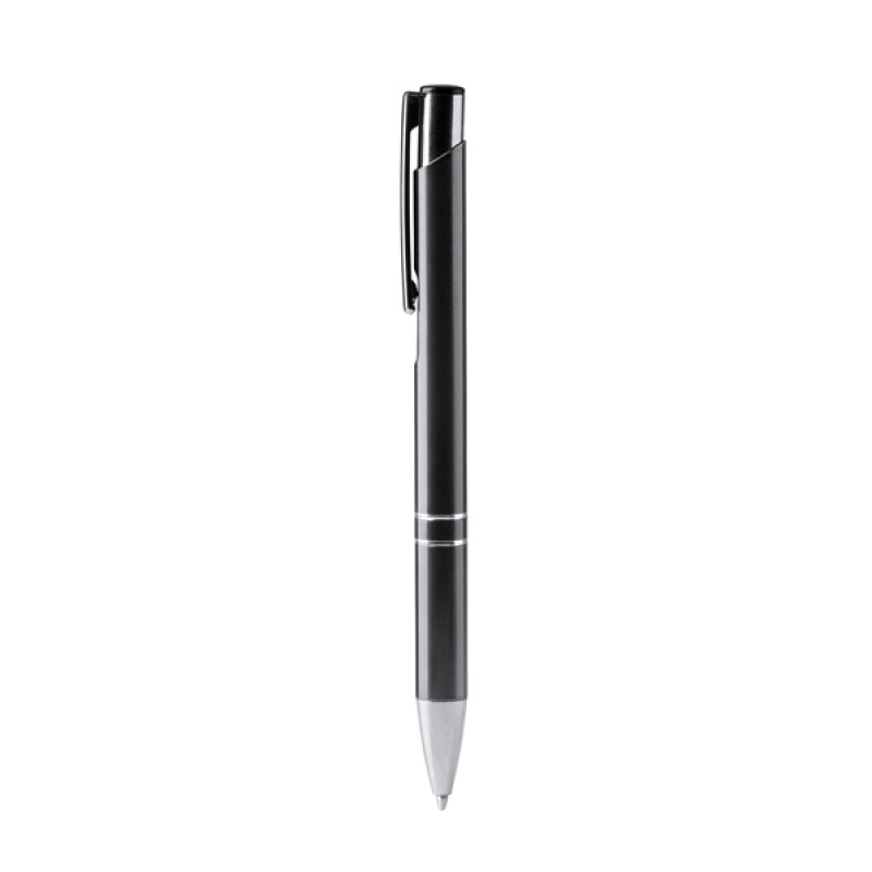 Description Stylo à bille avec corps en aluminium recyclé et bouton-poussoir en finition anodisée. Recharge jumbo d'encre bleue. |