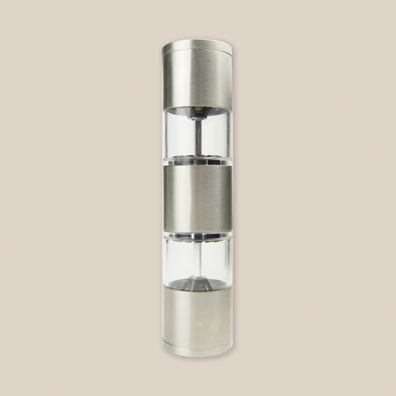 Description Poivrière manuelle en plastique et acier inoxidable. Contient 2 compartiments différenciés pour 2 types d'épices. |