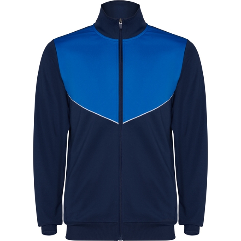 Description Survêtement en tissu léger et élastique.· Veste avec poitrine contrastée en couleur.· Col montant aux coutures contrastées.· Fermeture éclair centrale· Poches latérales.· Poignets et ceinture côtelés 2x2.· Pantalons avec ceinture élastique et cordon de serrage. · Pièce latérale contrastée avec garniture de couture. · Bas zippé. |