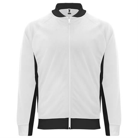 Description Veste sportive combinée.1.- Manches raglans. 2.- Panneaux combiné sur latérales et manches.3.- Col, poignets et bas en côte 2x1 contrastés.4.- Deux poches latérales zippées.5.- Doublure intérieure filet ton sur ton. |