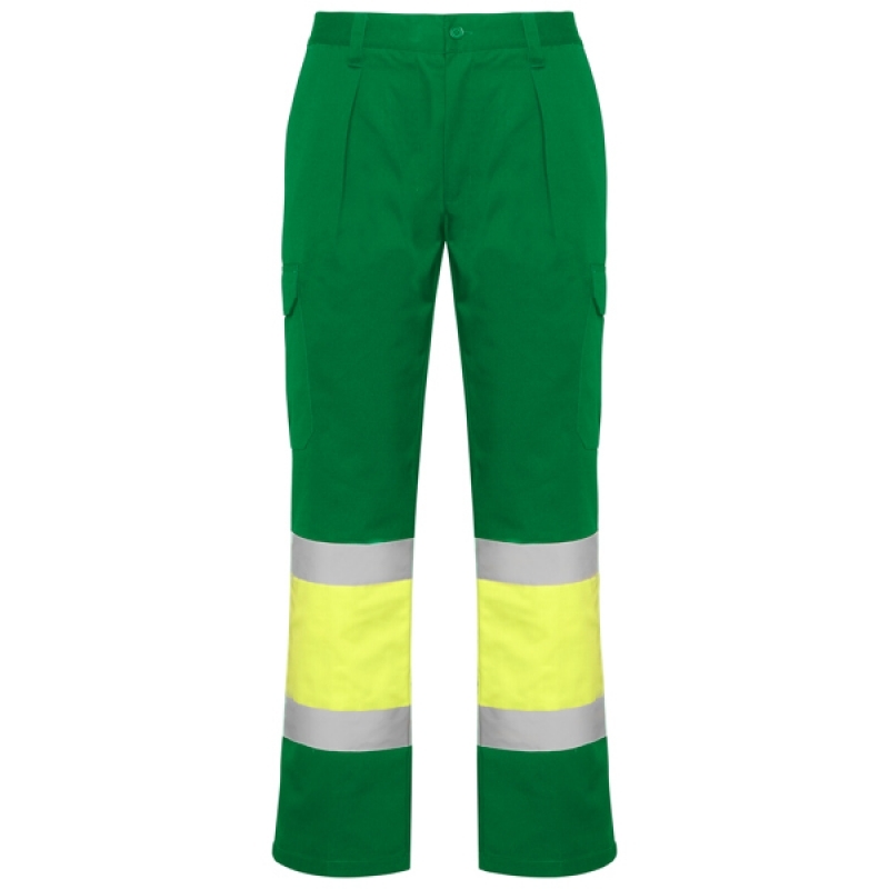 Description Pantalon d'hiver multi-poches haute visibilité.· Ceinture élastique au dos.· Deux poches à rabat au dos et avec fermeture velcro.· Deux poches avant et deux poches latérales avec soufflets et rabat à fermeture velcro.· Combiné en deux couleurs avec bandes réfléchissantes. |