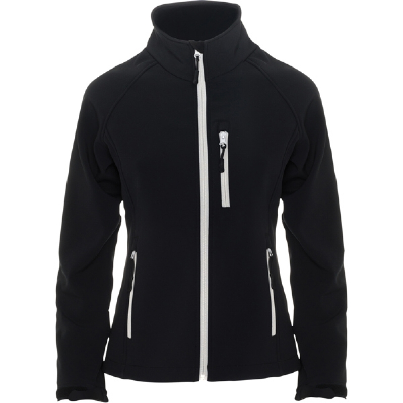Description Softshell 2 couches.1.- Fermeture éclair avec protecteur menton contrasté et curseur.2.- Trois poches avec fermeture contrastée et curseur. 3.- Cordon de serrage poignets avec velcro. 4.- Ceinture avec cordons élastiques et embouts. |