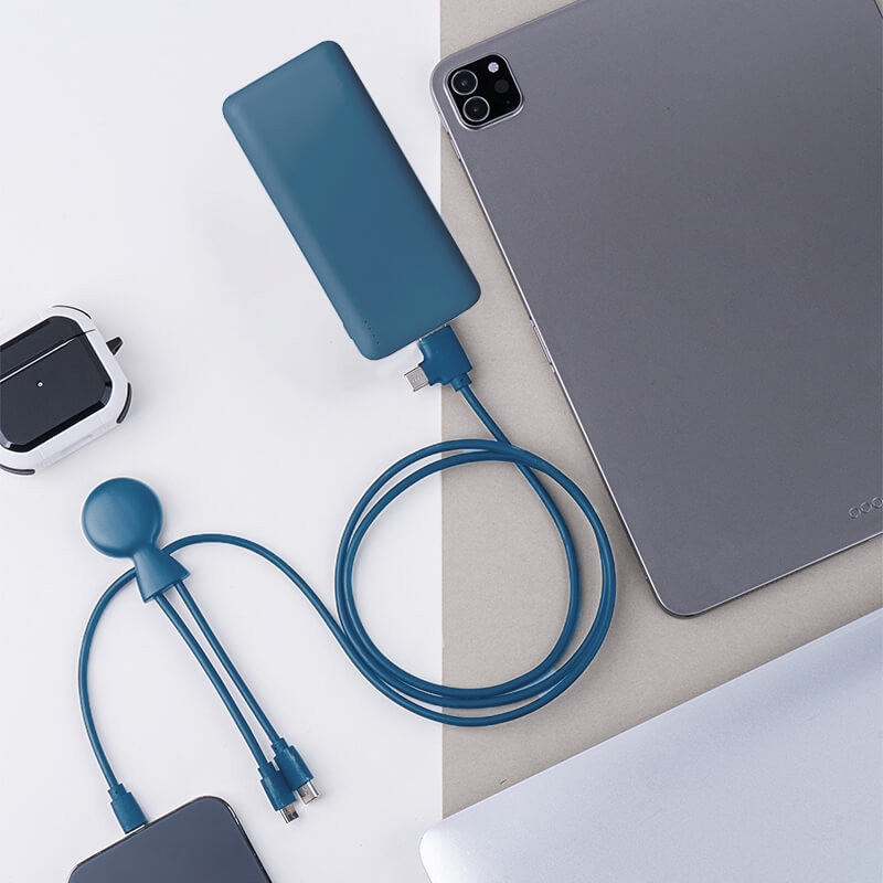 Description Mr Bio Pack HEPTA. Votre tout en un pour un voyage toujours plus connecté !Le pack de charge Xoopar Hepta : une power bank de 7000mAh, de quoi recharger 3X votre smartphone, combinée à un câble multi-connecteurs de 1M de long pour plus de liberté. Pour les specs : Batterie :Puissance : 7000mAhRecharge jusqu’à 3 fois un smartphone Câble :Multi-câbles : un mètre de longEntrée : USB-C et USBSortie : lightning, USB-C & Micro-USBProduit :Compatible avec tout type d’appareil (smartphone, uteur sans fil, GoPro…)Produit garantie 2 ans Le nouveau pack de charge Bio est développé dans une démarche de progrès. On vous explique tout :25% du volume total du produit est fabriqué à partir de plastique recyclé Packaging en papier certifié FSC issu d'une exploitation forestière, disposant d'une gestion durable Matières :50% ABS recyclé48% TPE recyclé MarquageMade in FranceEncres certifiées NF71.3Tampo 1 couleur et + (numérique)Possibilité de marquage recto/verso sur les 2 produits |