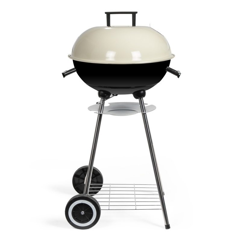 Description Surface de cuisson Ø 41 cm Grille en acier chromé Cuve et couvercle en acier émaillé Hauteur de cuisson 69,5 cm Couvercle avec clapet d’aération, Couleur principale : Crème Couleur secondaire : Noir Matière principale : Métal, Dim: 84 X 46 X 43 cm |