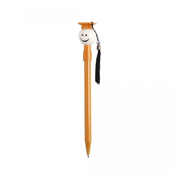 Description Stylo amusant figurine de diplomé avec pompon en tissu proposé en plusieurs coloris. Encre bleue. |