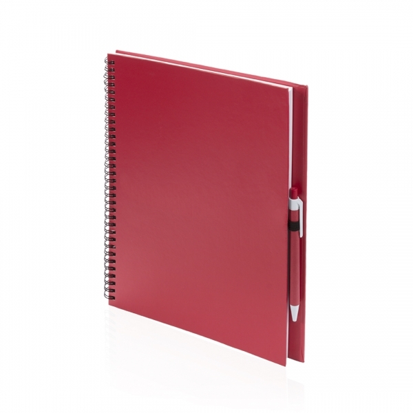 Description Cahier à spirales avec couverture toucher doux en carton recyclé résistant avec stylo à bille en carton recyclé assorti. Disponible en couleurs éclatantes, avec 80 feuilles unies et porte-stylo au dos de la couverture. |