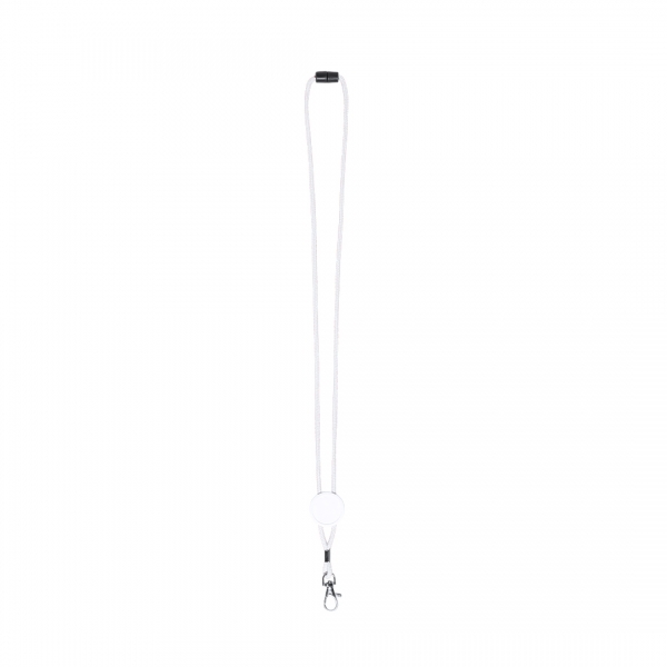 Description Lanyard cordon en polyester résistant et doux aux couleurs variées et lumineuses. Avec clip de sécurité au cou, mousqueton en métal et pastille centrale pour le marquage.  |