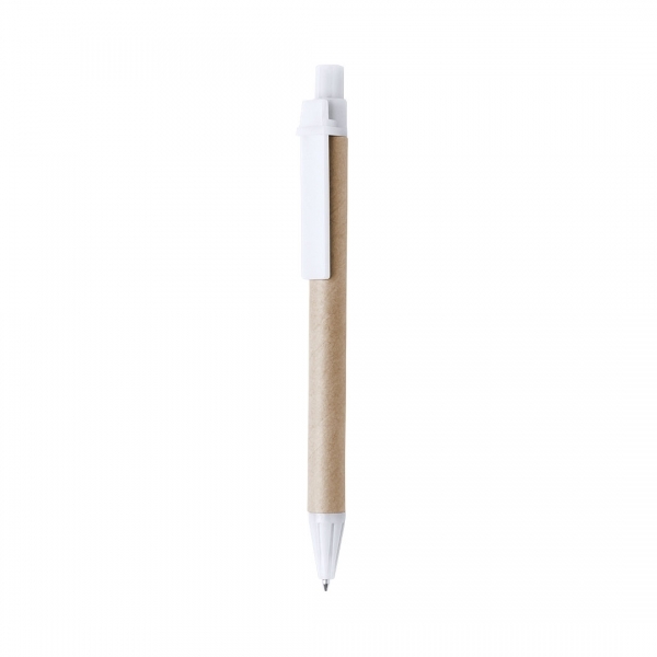 Description Stylo à bille à bouton-poussoir en mélange de carton recyclé couleur naturelle pour le corps et attributs de couleurs vives. Encre noire. |