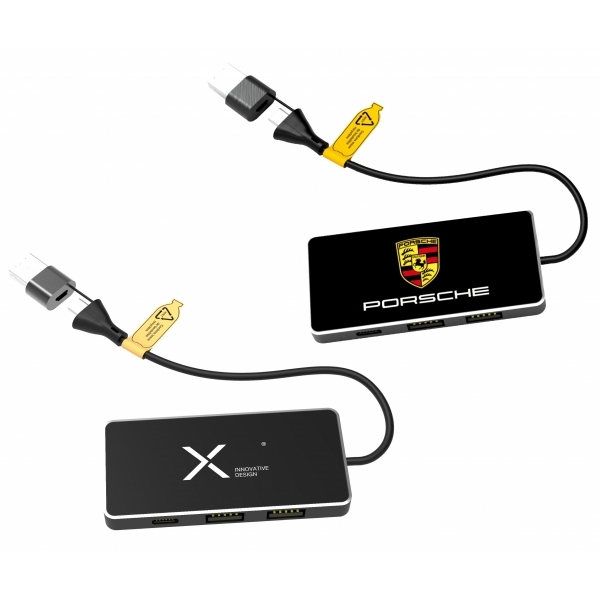 Description Chargeur hub avec 3 ports USB-A et 3 ports USB-C. Grâce à sa double sortie USB-A + USB-C, le hub est 100% compatible avec les derniers ordinateurs du marché et offre la fonction de transfert de données. Il est doté d'un câble en plastique recyclé. |