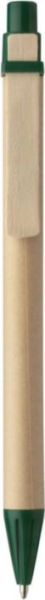 Description Stylo bille en carton et plastique avec clip en bois, mine Bleue. |