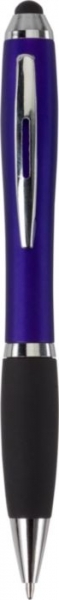 Description Stylo bille en plastique avec embase en gomme et embout pour écran tactile, mine Noire. |