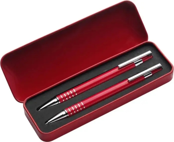 Description Parure de stylo bille et porte-mine en aluminium dans un écrin en métal, mine Noire. Fourni avec une encre d’origine allemande Dokumental. |