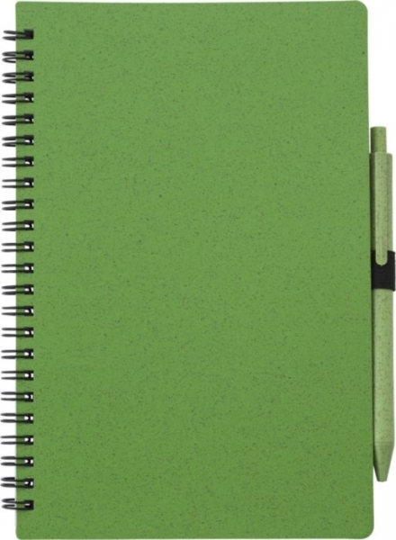 Description Carnet à spirale A5 en fibre de paille avec couverture en PP contenant 70 feuilles lignées et un stylo en fibre de paille, mine Bleue. |