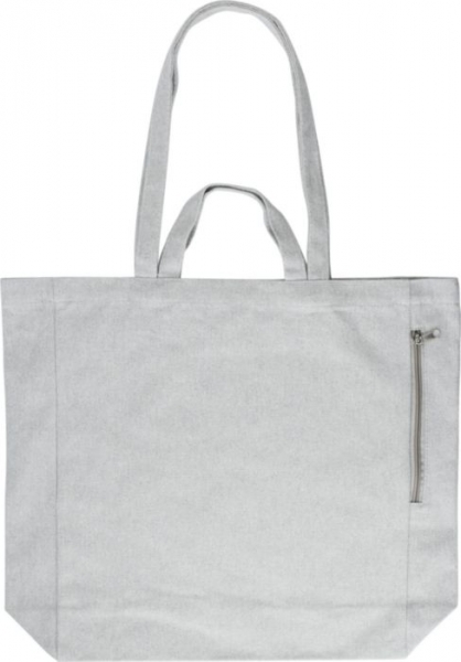 Description Sac shopping 350 g/m² en coton recyclé avec anses courtes et longues, poche frontale zippée. |