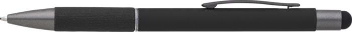 Description Stylo bille en aluminium mat avec attributs couleur titane, embase en carton gaufré et embout pour écran tactile, mine Bleue. |