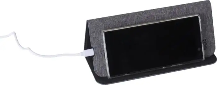 Description Tapis de souris chargeur à induction 10W en rPET transformable en support de téléphone dans une boîte cadeau kraft. |