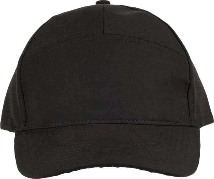 Description Casquette de 7 panneaux en polyester avec trous d'aération découpés au laser. |