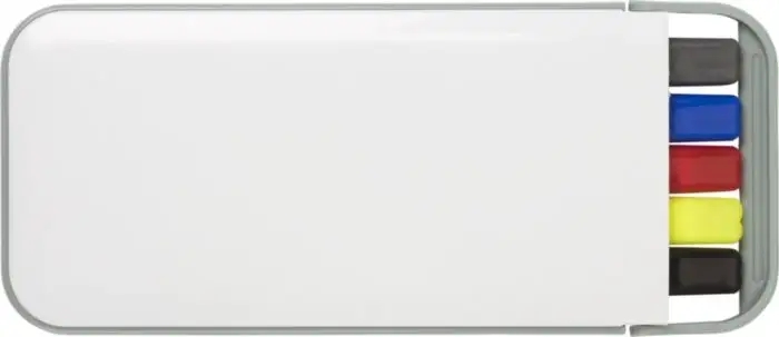Description Etui en plastique contenant 3 stylos bille (mines Noire, Bleue et Rouge), un surligneur Jaune et un porte-mine. |