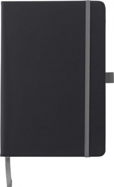 Carnet A5 avec couverture en PU contenant 96 feuilles lignées avec fermeture élastique et marque-page. Gravé, le rendu de la couleur correspond à la couleur des attributs.