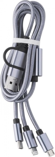 Description Câble de charge en cuivre avec entrée USB et USB-C 1,5A et sortie micro USB, USB-C et Lightning. |
