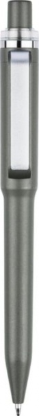 Description Stylo bille en ABS recyclé, finition métallique, mine Bleue d'une longueur d'écriture de 800 mètres et logo ABS recyclé moulé. |