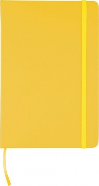 Description Carnet A5 avec une couverture rigide en rPET PU, contenant 80 pages lignées de 70 g/m² avec fermeture élastique et marque-page. |