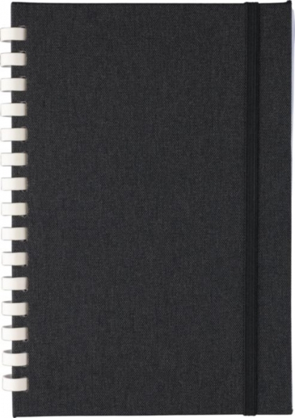 Description Carnet A5 en rPET avec couverture rigide et fermeture élastique. Il est doté d’une spirale de 15 anneaux en carton Blanc, d’un marque-page et de 80 feuilles de papier ligné de 70 g/m2. Logo rPET au dos. Emballé uniquement dans du papier de soie. |