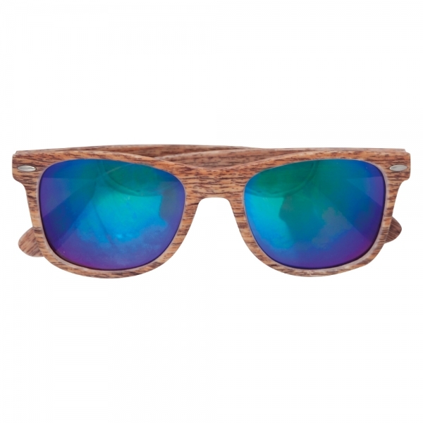 Description Lunettes de soleil fabriquées en plastique avec conception en bois et verre miroir UV 400. |