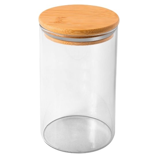 Description Pot en verre en borosilicate et couvercle en bambou, de 650 ml. Ne convient pas aux liquides. |