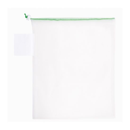 Description Sac réutilisable en filet de polyester avec fermeture à cordon, idéal pour mettre des fruits. |