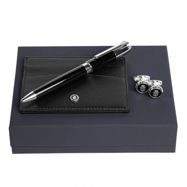 Description Parure signée Festina composée d’un stylo bille élégant, d’un porte-cartes raffiné et d’une paire de boutons de manchette assortis, un ensemble harmonieux qui allie style, praticité et finitions soignées. Idéale pour un cadeau d’affaires premium, cette parure apporte une touche de distinction et valorise durablement votre image. |