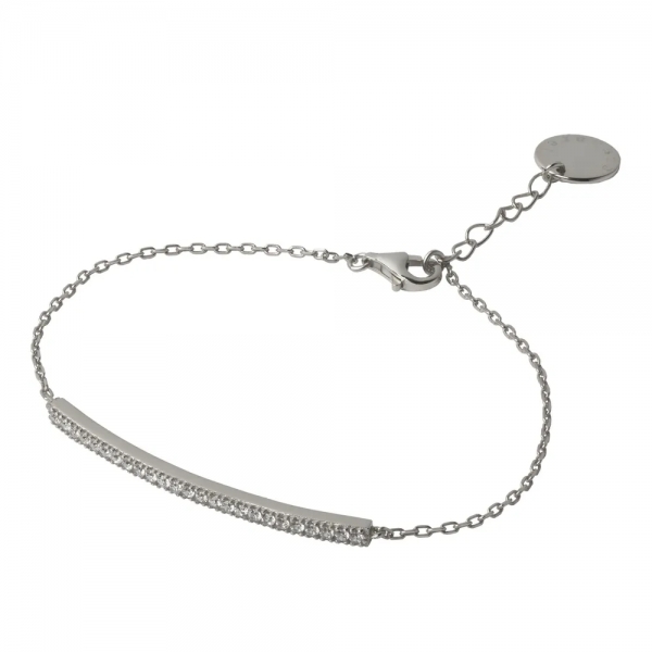 Description Ce bracelet sobre et élégant est en argent fin sterling silver 925. Il est rehaussé d'une barrette pavée en cristal. Cet accessoire de couleur argenté est minimaliste mais éblouissant. Il est livré dans son écrin de présentation. |