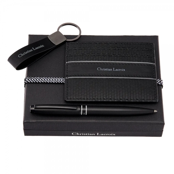 << Revenir au catalogue Liberty Gift > Les sets - Cadeaux > Divers Set porte-carte, stylo bille et porte clé Christian Lacroix